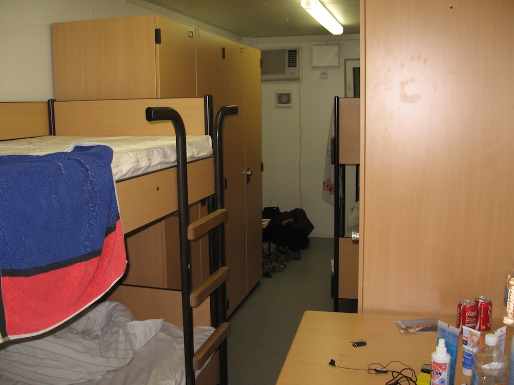 Unterbringung in 4-Mann Stuben/Containern mit jeweils 2 Doppelstockbetten.