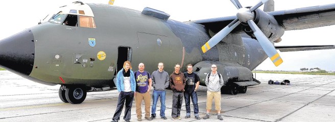 Der Flug ging mit einer Militärmaschine "Transall", also hinten durch die riesige Heckklappe an der Ladung vorbei auf sehr