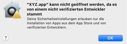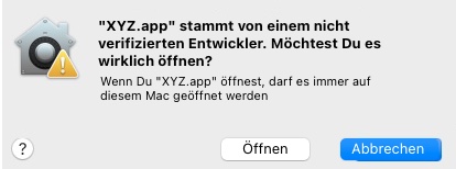 4. Kommt noch ein Warnhinweis "Unbekannter Entwickler..." und wieder auf "Öffnen" klicken
