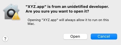 You will see another warning dialog "Unidentified developer..." and click "Open" again.