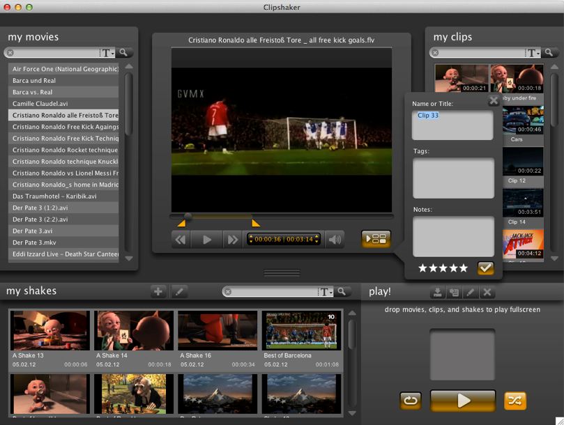Clip erstellen und mit Rating, Tags und Kommentar versehen.