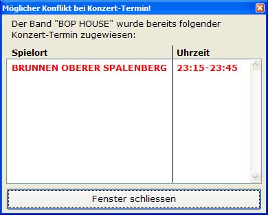 gegebenenfalls wird ein Hinweis auf eventuelle Konflikte ausgegeben.